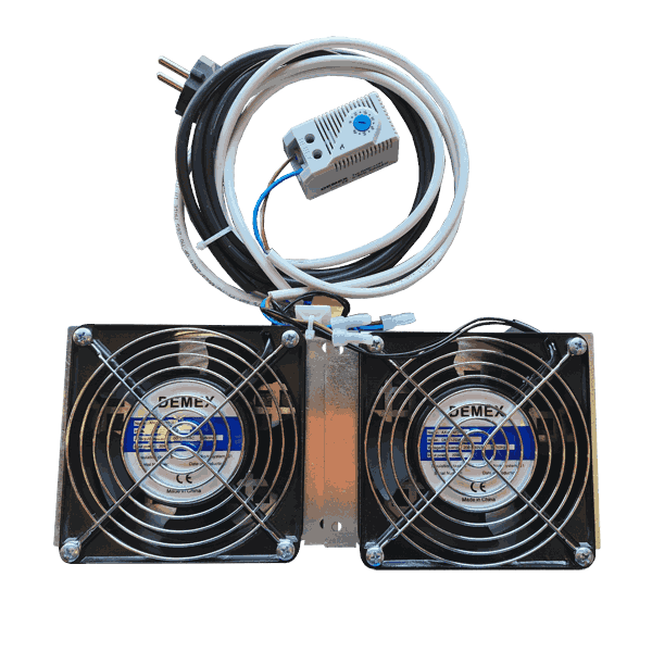 Settet betår av 2 Vifter og en Analog termostat